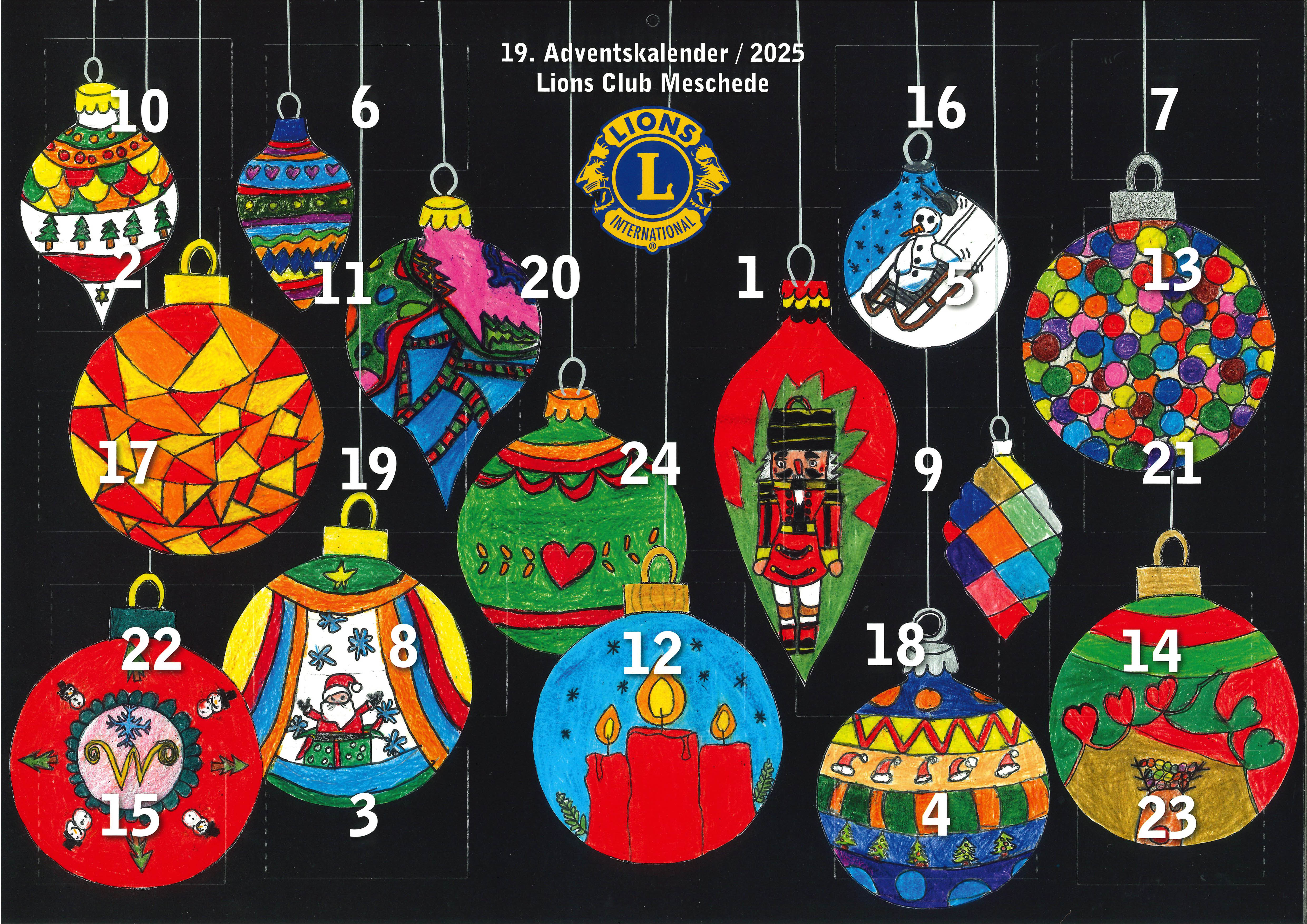 Herzlichen Glückwunsch! Mit dem Kauf eines Adventskalenders des Lions Club Meschede haben Sie schon Gutes getan und dazu beigetragen, dass wir in Meschede, Eslohe und Umgebung Menschen helfen können, die es nötig haben. Dafür sagen wir Ihnen herzlichen Dank. Auf dieser Seite können Sie ab dem 1. Dezember 2025 nachschauen, ob der Kalender mit Ihrer Seriennummer einen der vielen Preise gewonnen hat. Täglich öffnen wir ein Türchen und veröffentlichen die Gewinnernummern.